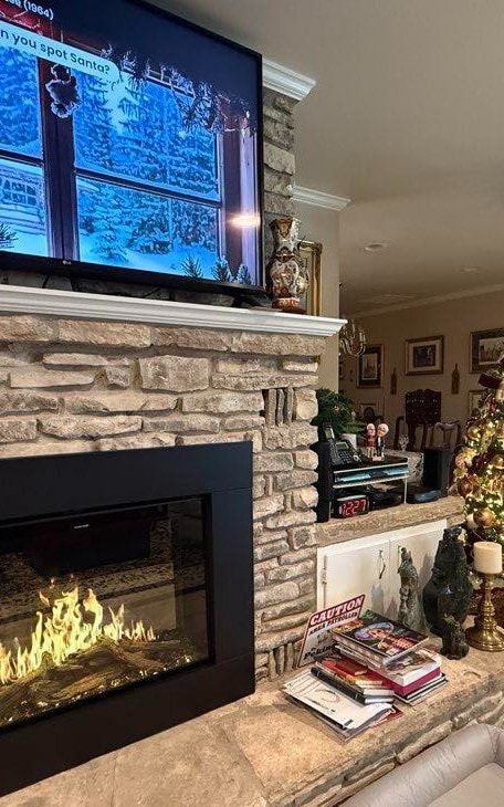 Instead of traditional logs, many homeowners are choosing glass media, river stones, or sculptural logs that align with contemporary design trends. These options give fireplaces a clean, upscale look that complements modern interiors without losing warmth and character.