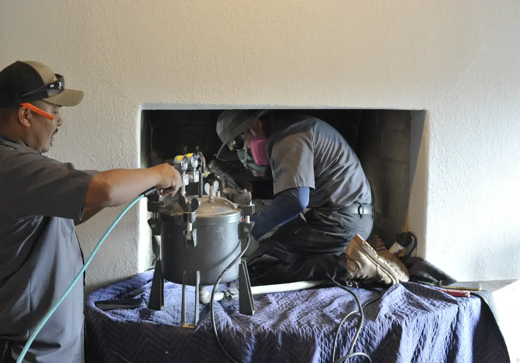 In fireplace repair, we look at issues inside your fireplace. This can include damage to the inside surfaces, changing out parts on your fireplace insert, parging your smoke chamber, or similar repairs that improve performance.